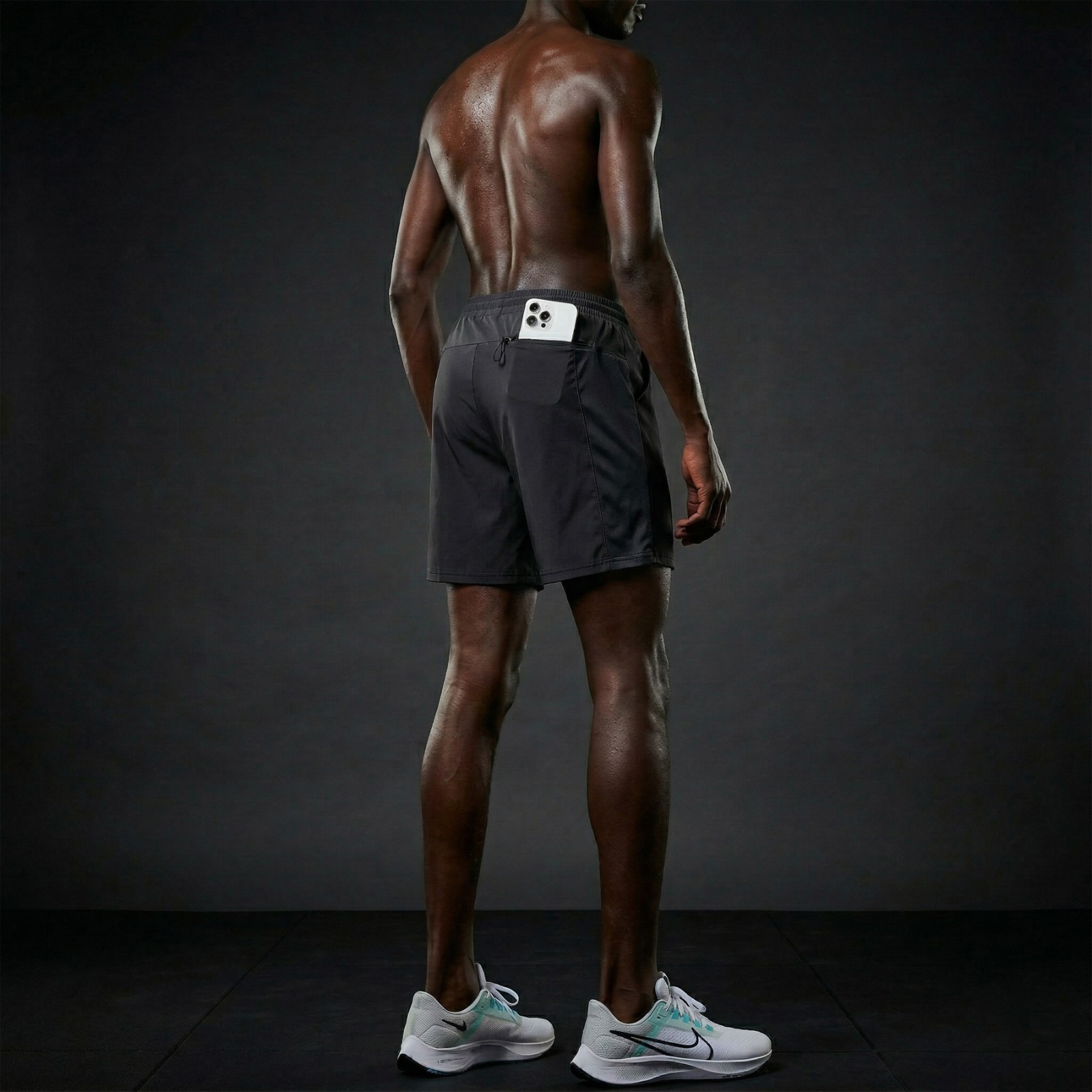 Lightweight, unlined running shorts designed for unrestricted movement. Featuring side pockets and a rear zip pocket for secure storage, perfect for running and training.