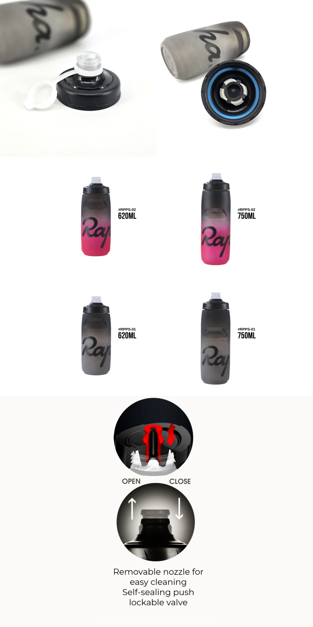 The Raph Passion 620ml & 750ml bottles feature an easy-squeeze design with a self-sealing, leak-proof nozzle. Made from taste-free plastic for a clean, natural water flavour.