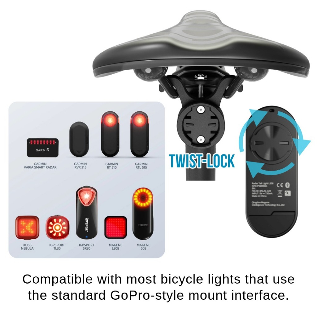 Compatible with most bicycle lights using the standard GoPro-style mount interface.