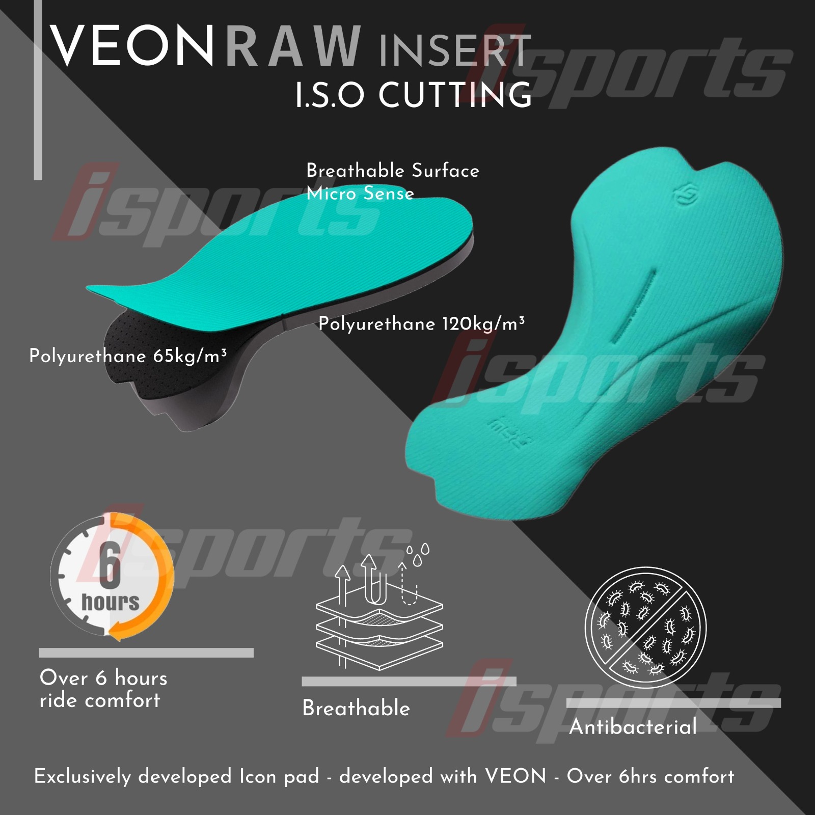 - Exclusively developed Icon pad - developed with VEON RAW INSERT I.S.O. - 6hrs comfort