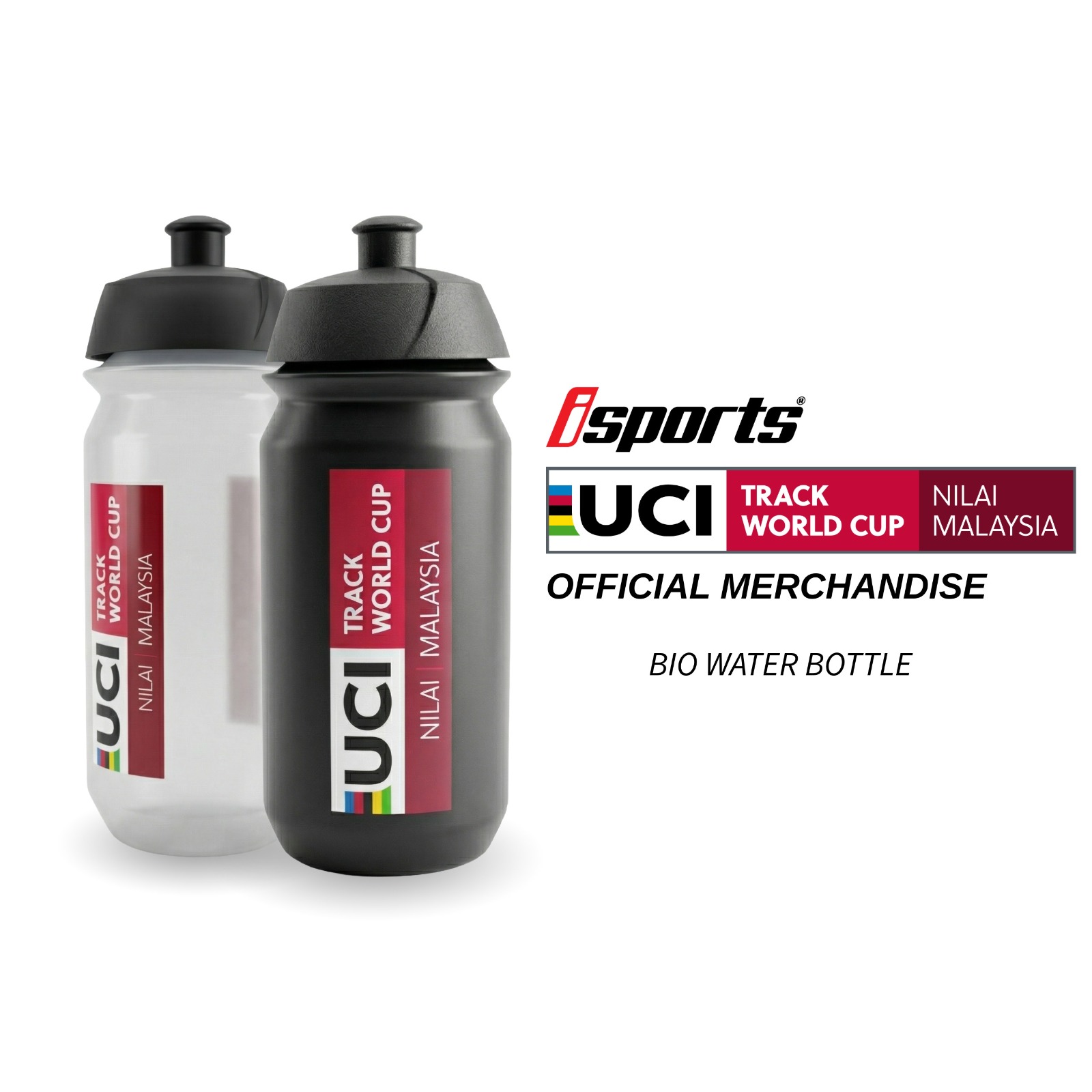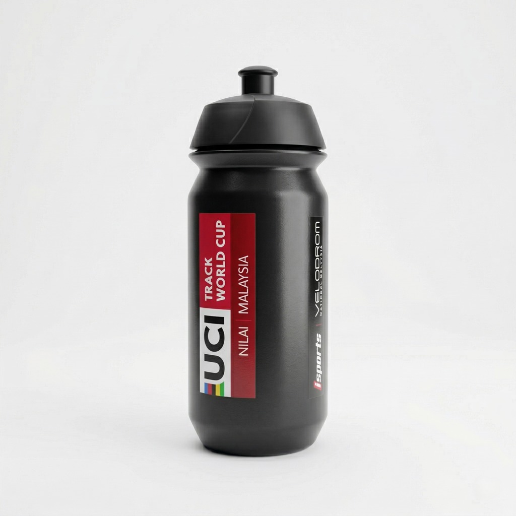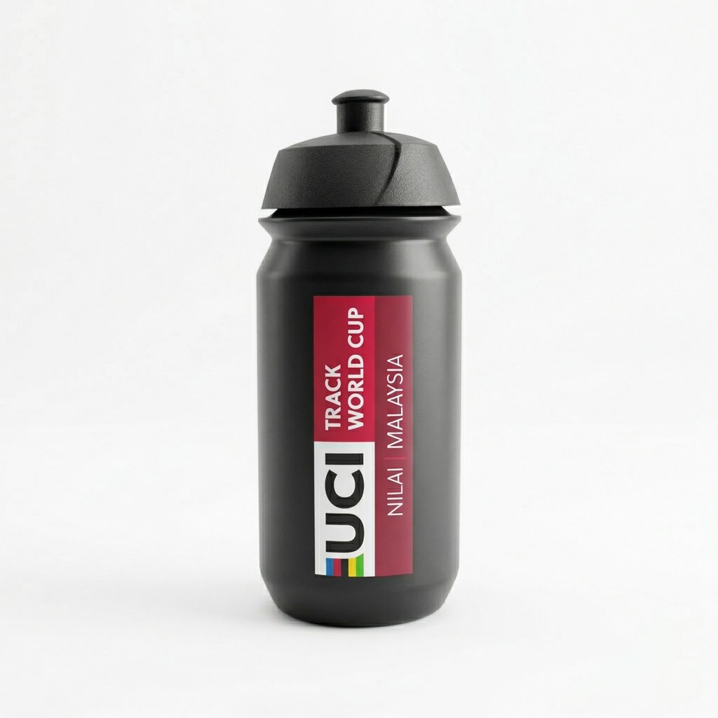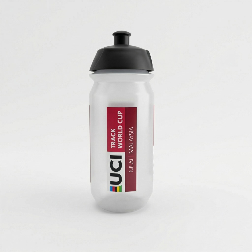 UCI Track World Cup 2026 Bio Water Bottle, designed with advanced flow technology for smooth and effortless sipping on the move. Exclusive limited edition merchandise.
